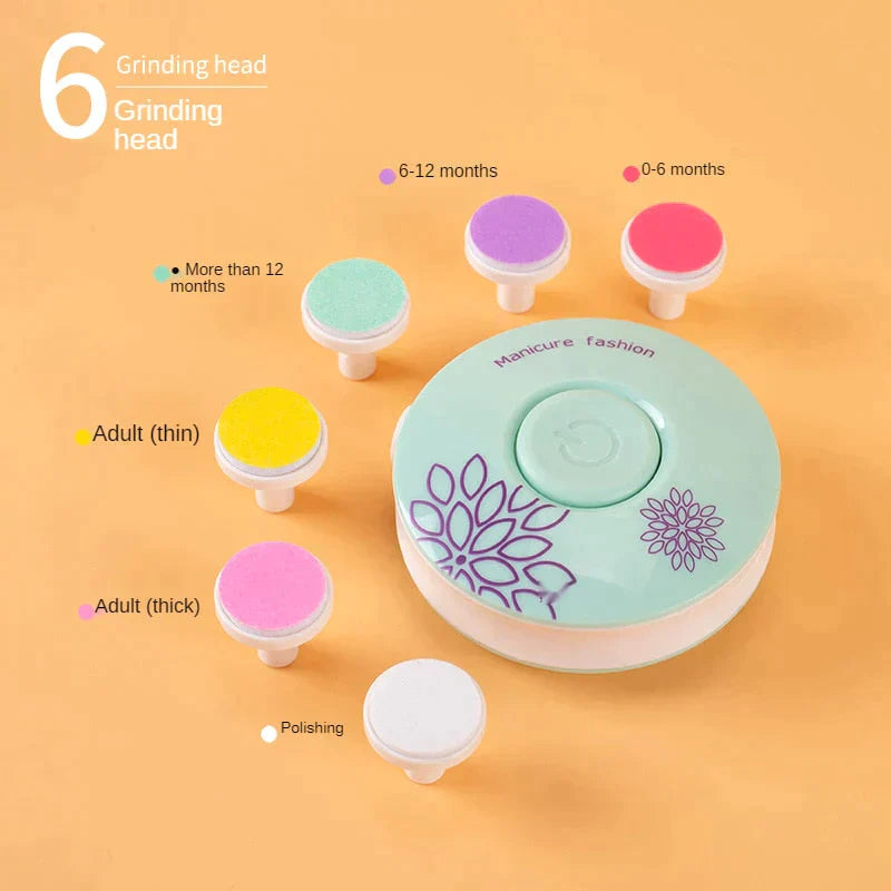 Each set comes with 6 baby and children-friendly cushioned sandpaper file head attachments, (Including 1 special tool for CALLUS REMOVAL). It is the perfect Baby Shower Gift.
