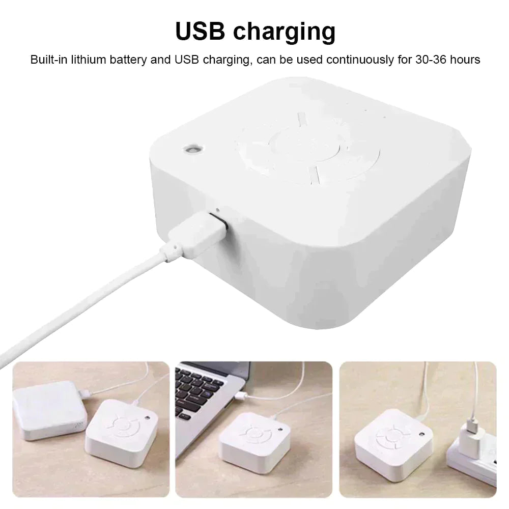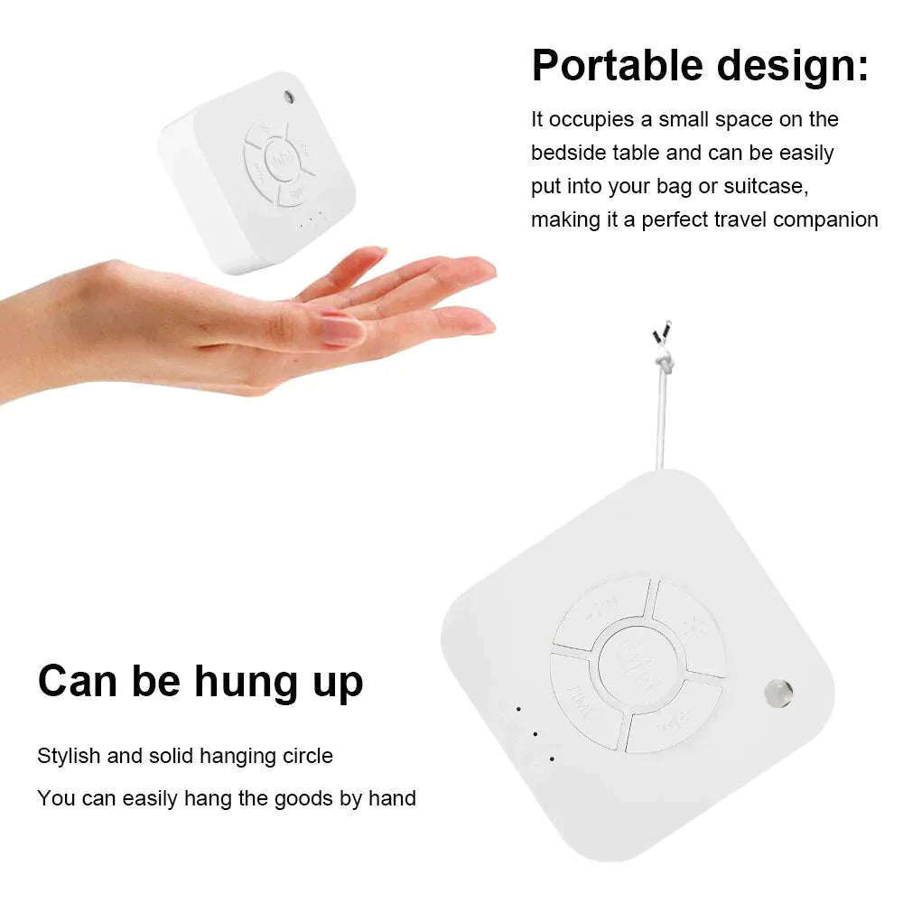 Relaxation Sleep Sound Machine Portable design: It occupies a small space on the bedside table and can be easily put into your bag or suitcase. It is a perfect travel companion.