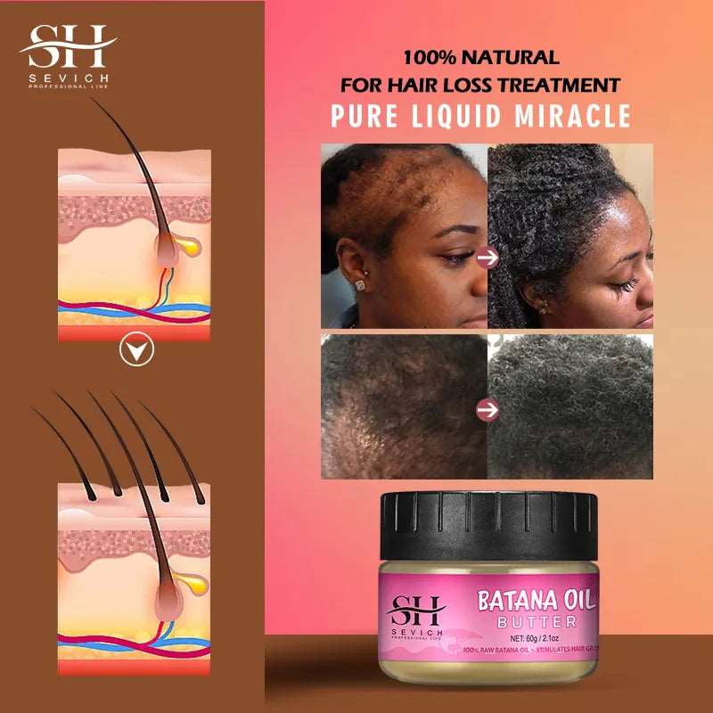 Derived from the Burahem Palm fruit, 100% Pure Batana Oil is a natural butter for hair loss treatment. Known for its ability to improve hair texture and reduce split ends, this treatment oil also promotes healthy scalp and repairs damaged hair. Say hello to beautiful, revitalized locks with Batana Oil.