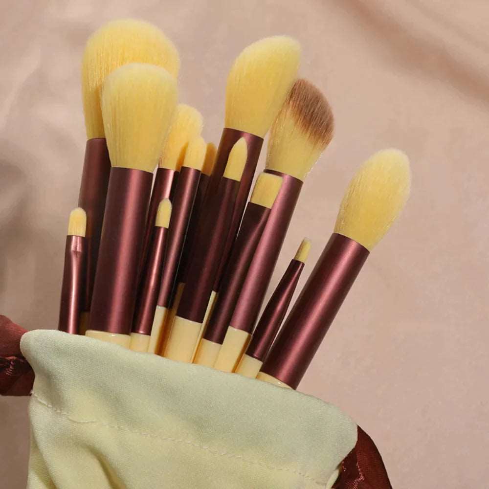 Durable cosmetic brush with a wooden handle and an aluminum tube. It's simple to clean, but it's difficult to shed hair. This Set Contains a Foundation brush, makeup brush, shadow brush, blush brush, eye shadow brush, lip brush, and other brushes are included in this set of 13. Artificial fibers that are soft and fine prevent skin injury.