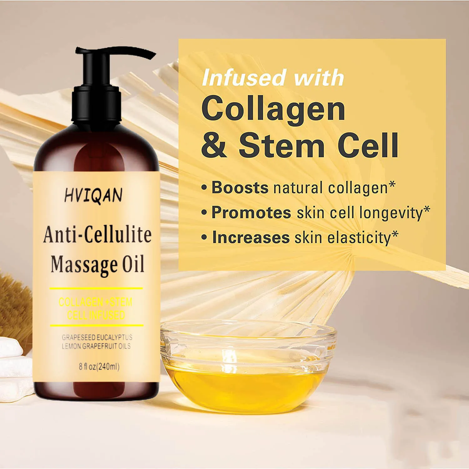 2.Collagen and Stem Cell Infused Body Oil for Women: Cellulite Massage Oil infused with collagen and stem cell to prime your beautiful skin by providing a boost in natural collagen production and increasing skin cell longevity. A truly powerful skin care combination delivering unmatched anti-aging results for massage and manipulation therapies.