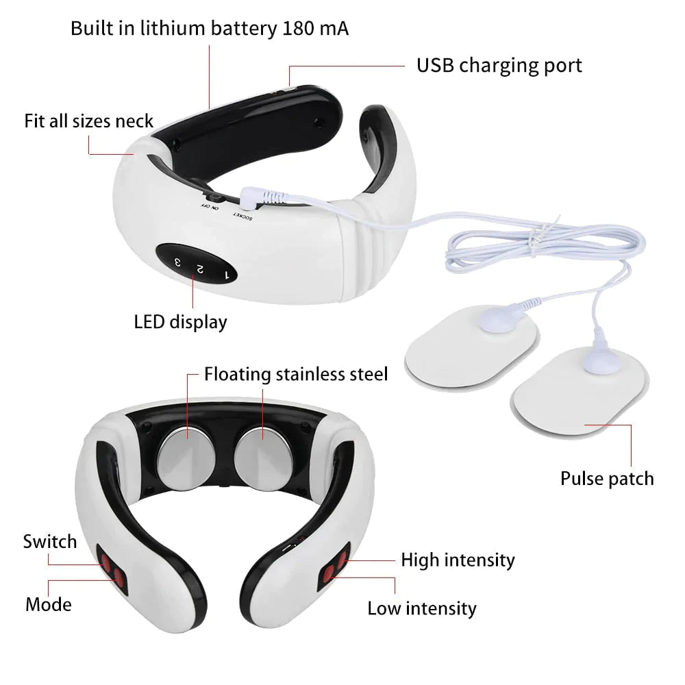 Electric pulse massage can stimulate blood circulation, and relieve your muscles. It is suitable for the treatment of relieving neck pain, shoulder, headache, dizziness, and fatigue.
