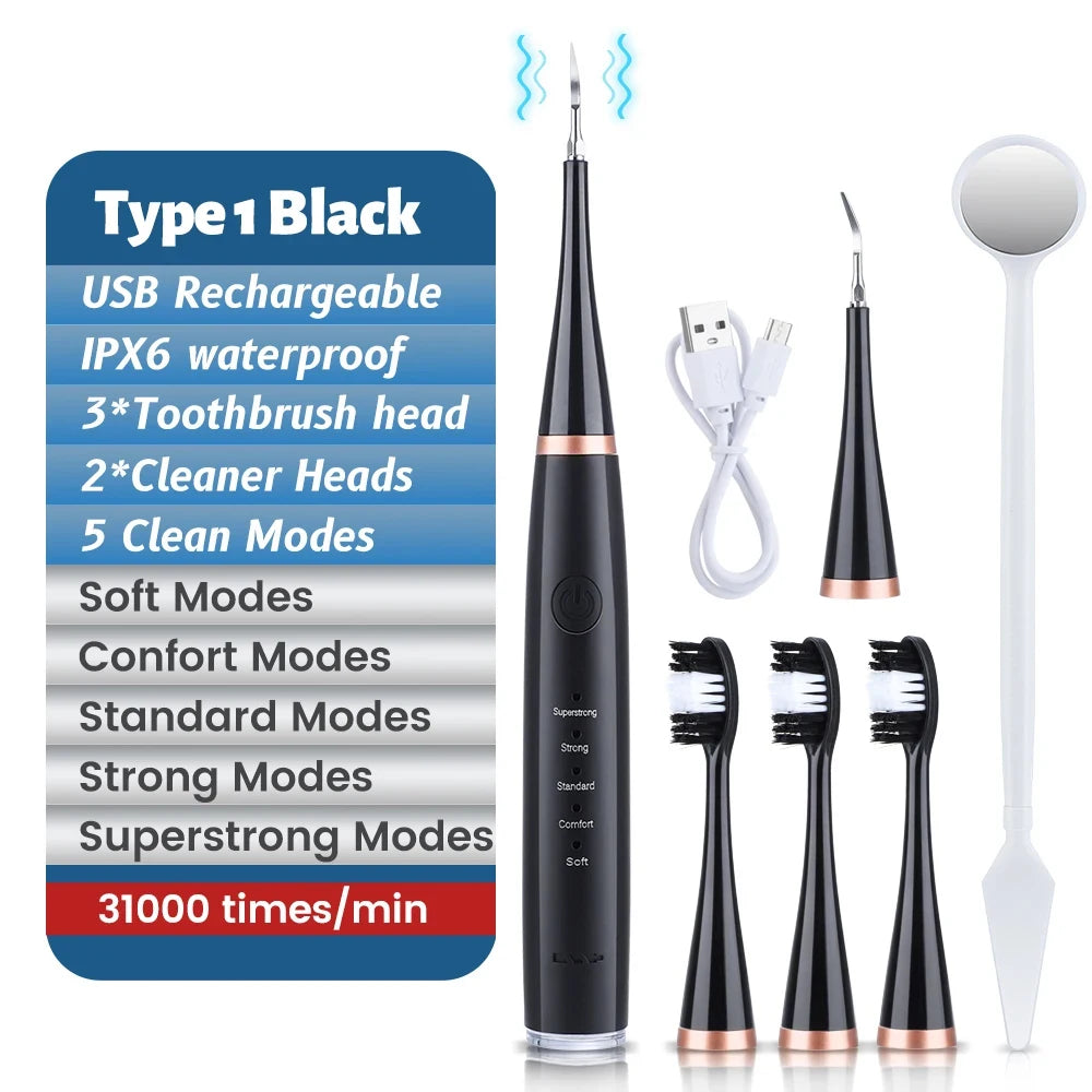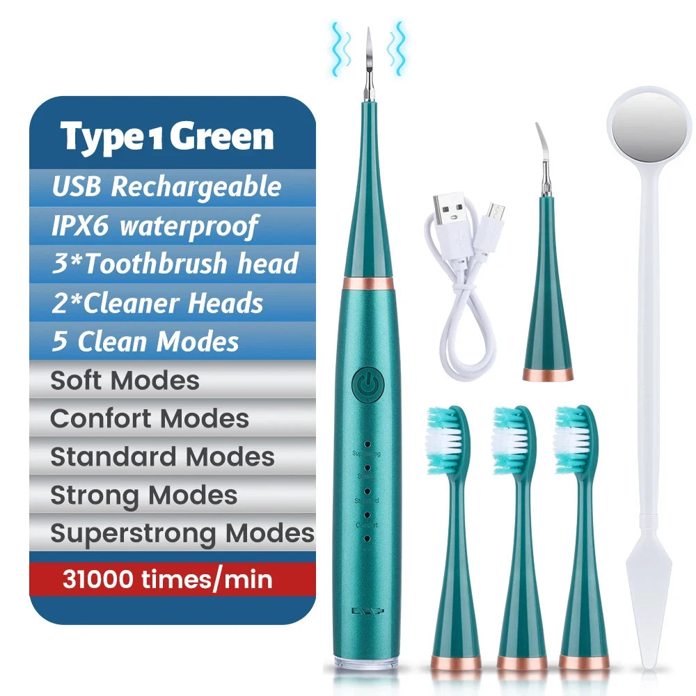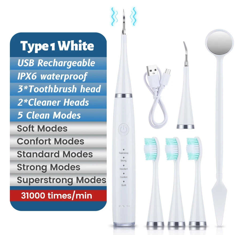 Experience a safer and more thorough oral cleaning with our Electric Ultrasonic Dental Calculus Remover. Using ultrasound technology, it effectively removes plaque and calculus without damaging gums or soft tissues. Unlike traditional cleaners, only the abrasive tip touches teeth, minimizing the risk of bleeding. Trust this professional-grade cleaner for a healthy, clean smile.