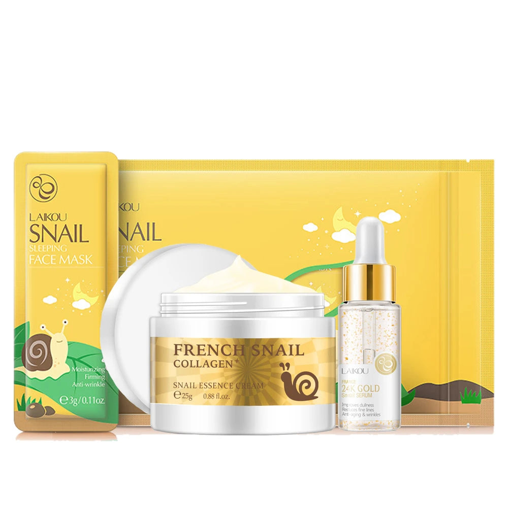 This Skin Care Set contains snail fluid nutrients that deeply nourish skin, promoting firmness and reducing fine lines and wrinkles. Enriched with tea tree and other beauty ingredients, it also soothes and rejuvenates the skin, helping you to maintain a youthful appearance. Experience the power of nature for a radiant complexion.