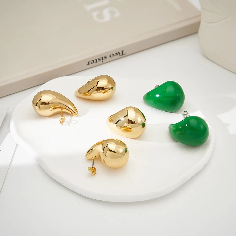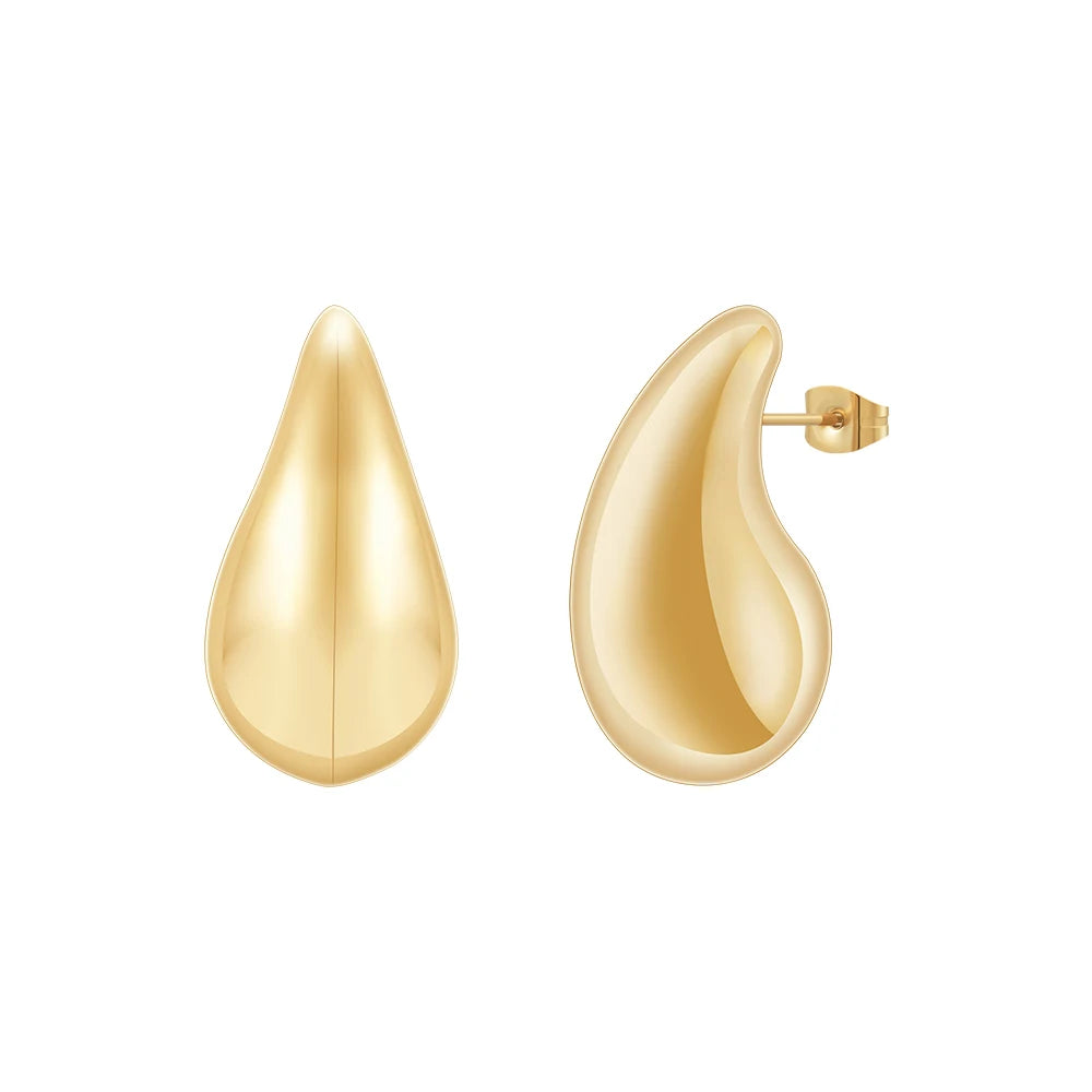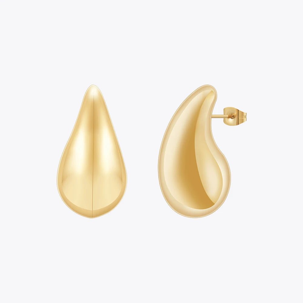 Take your style to the next level with LILIFLOR's 18K Gold Plated Stainless Steel Raindrop Ear Studs! These glossy earrings add a touch of adventure and edge to any outfit. Perfect for parties and as a gift, stand out from the crowd and embrace your bold side with these unique earrings.