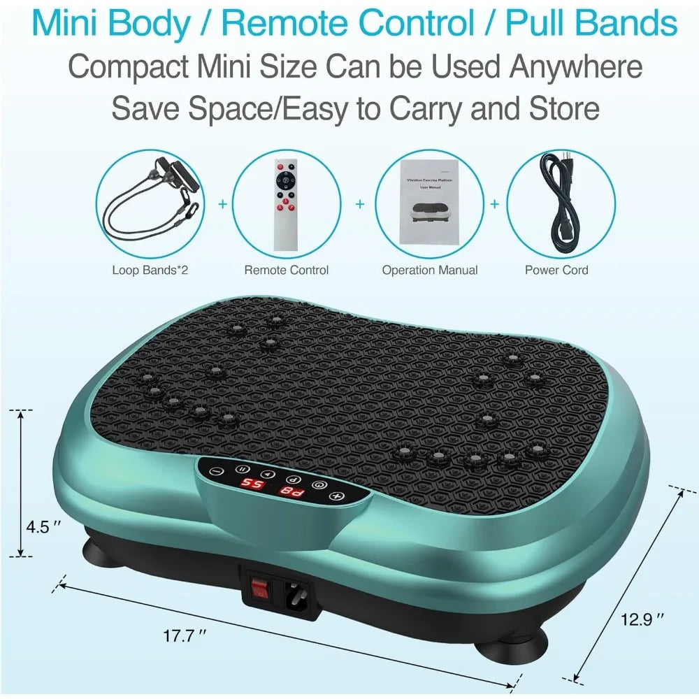 - ✅RICH FUNCTIONAL & HIGH EFFICIENT& REMOTE CONTROL: Adjustable vibration speed (1 to 99), with 2 resistance workout bands, can exercise upper body and lower body at the same time. Offering variety of exercise modes, allow you to try different vibration exercises, With this workout machine, you can have your routine exercise done in only 10 minutes everyday. What you'll get is a better shape and enhanced metabolism, increased bone mineral density, relieve and reduce stress levels.