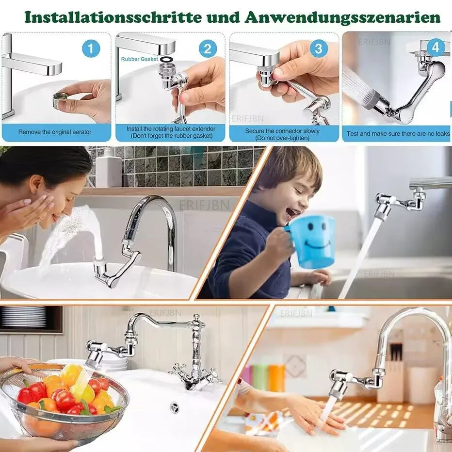 This Rotating Water Faucet Adapter Splash is the perfect addition to any bathroom or kitchen. Easily switch between a soft bubble stream and strong spray with just a simple rotation, while the 1080-degree rotation allows for complete sink coverage. Say goodbye to messy mouthwash cups and enjoy an all-in-one experience with this versatile faucet.