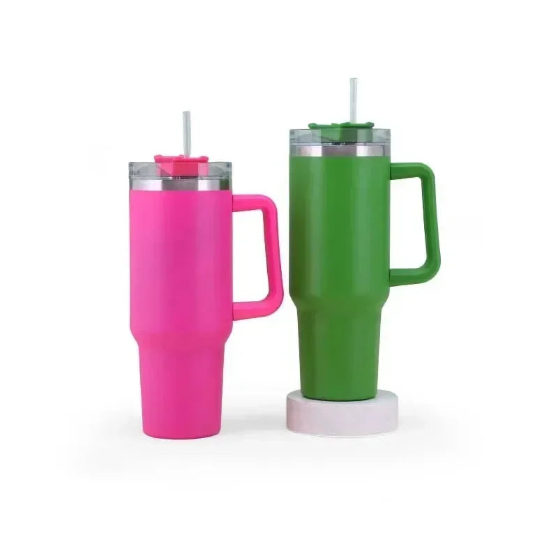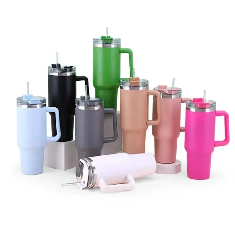 Stainless Steel Insulated Water Bottle,40oz Thermal Coffee Car Cup, Cold Hot Mugs Vacuum Flask with Handle Straw, For Sport