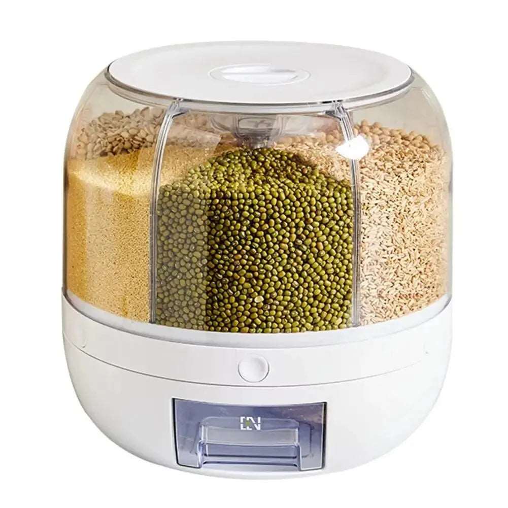 • 360° Rotating Design: The 360° divided rice bucket rotates, providing easy and convenient access to your dry cereal grains. It's a practical kitchen storage solution that ensures your food stays fresh and secure.