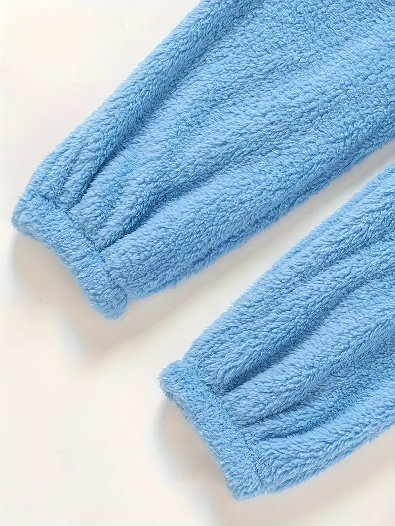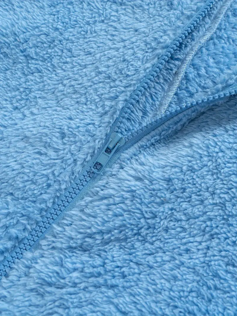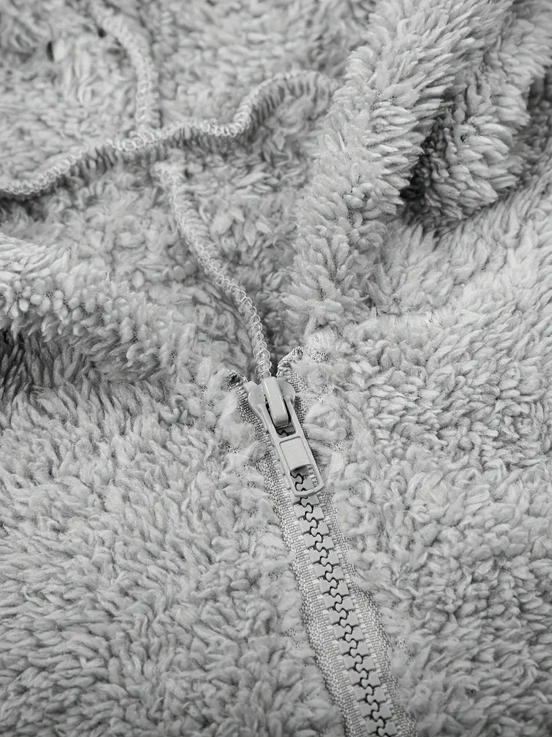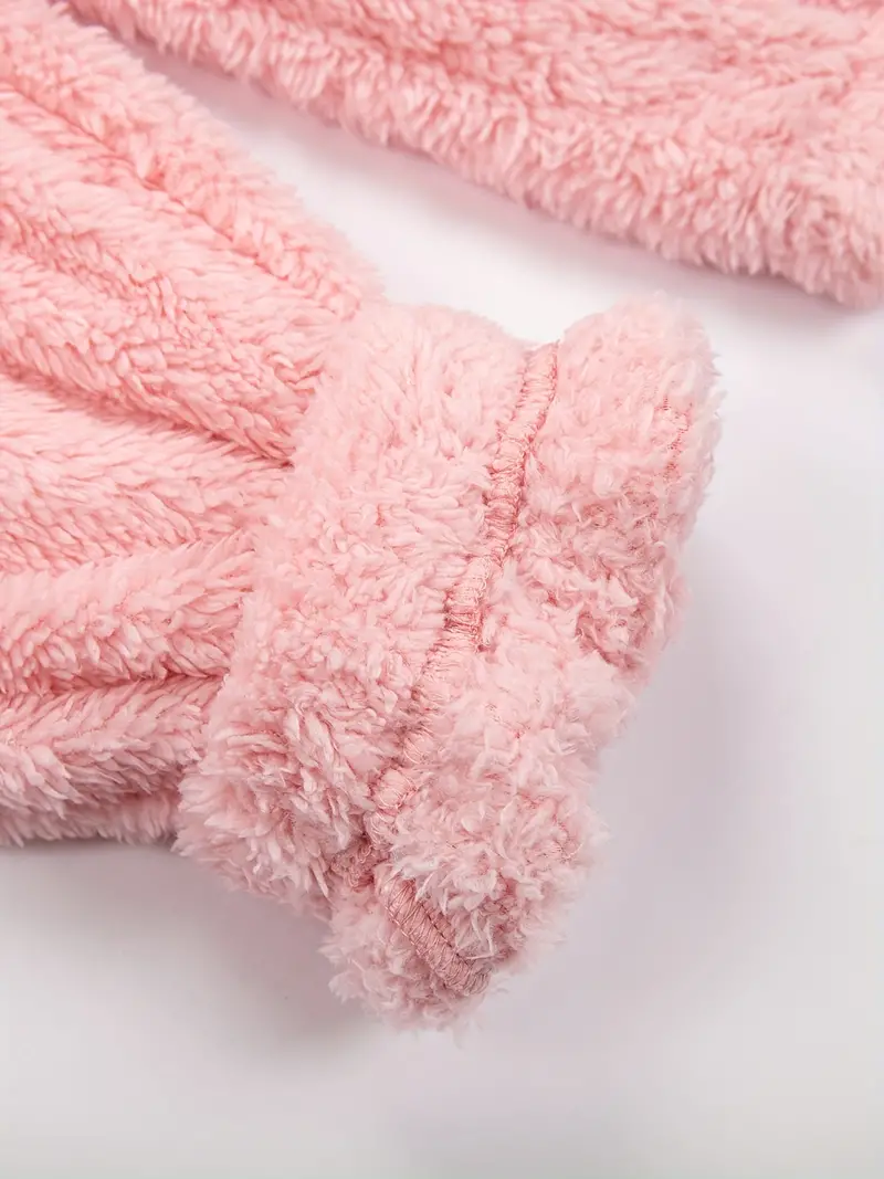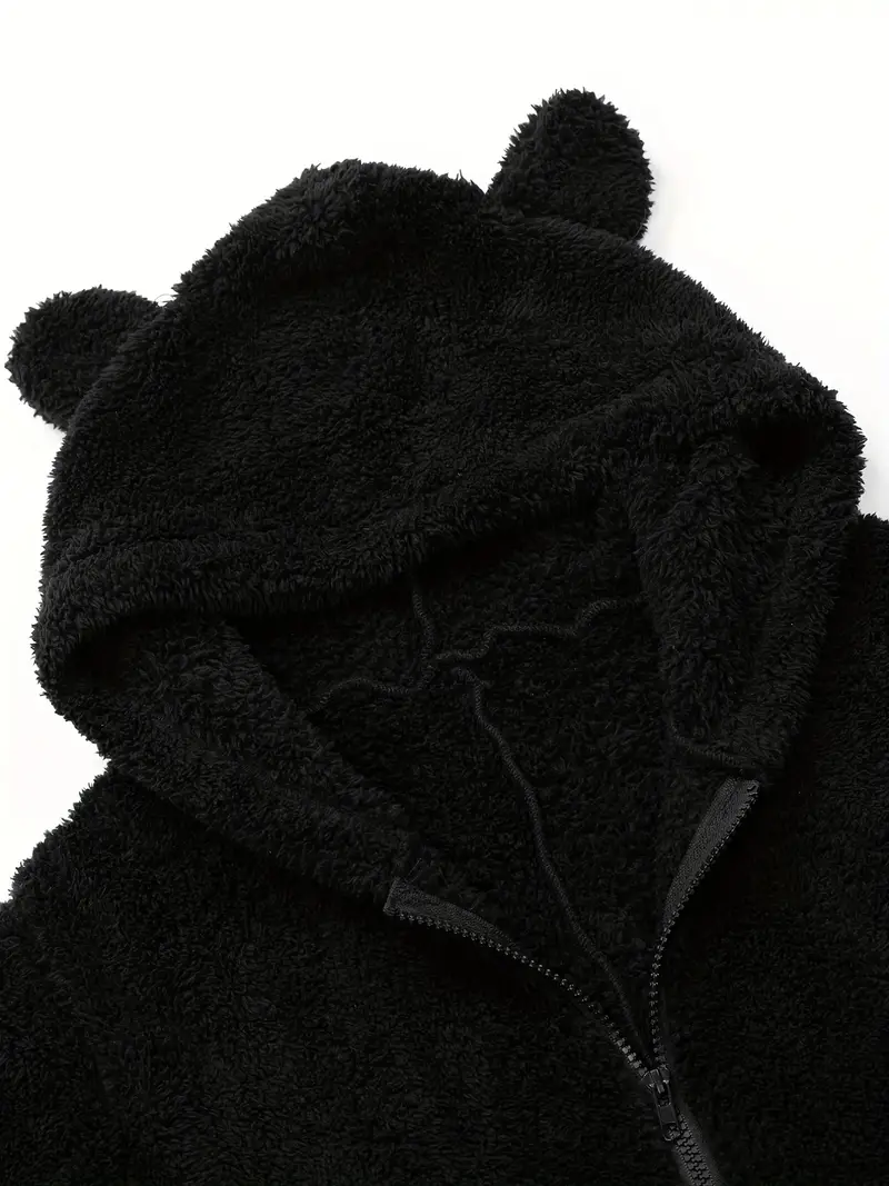 Fuzzy Hooded Pajama Jumpsuit For Music Festival, Comfy & Cute Long Sleeve Zipper Pajamas, Women's Lingerie & Sleepwear