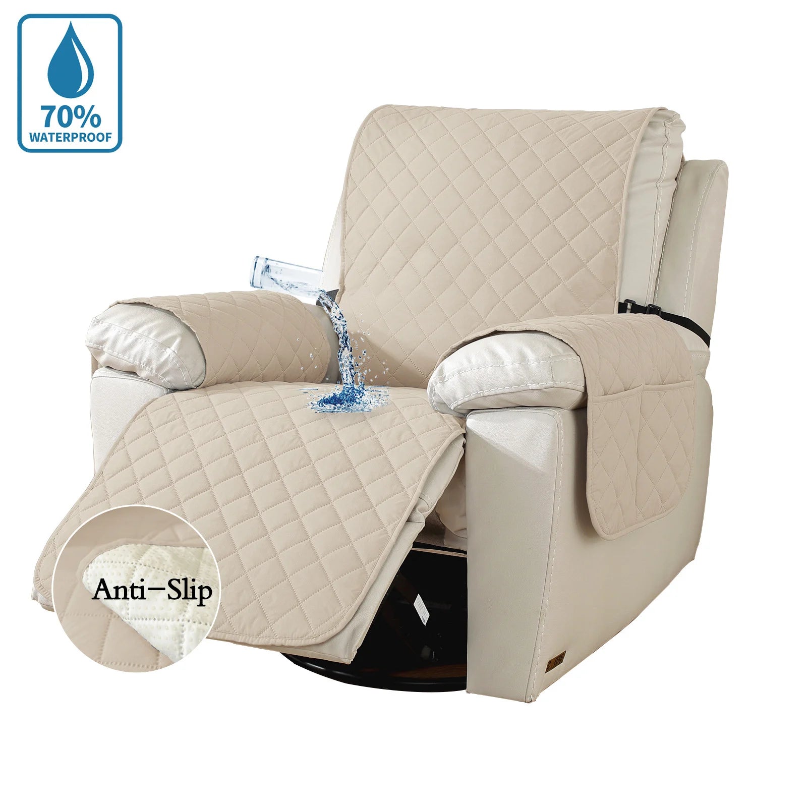 【Waterproof & Antiskid】Our Recliner chair covers offer unbeatable protection and style. With four layers of premium materials, including soft, skin-friendly waterproof fiber fabric, a waterproof TPU film layer, and comfy textile fiber padding. The smart anti-slip design, featuring latex particles on the back, prevents slipping and sliding. Cleaning is a breeze – these Recliner covers are machine or hand washable below 30°C, Just remember, no bleach or high temperatures needed!