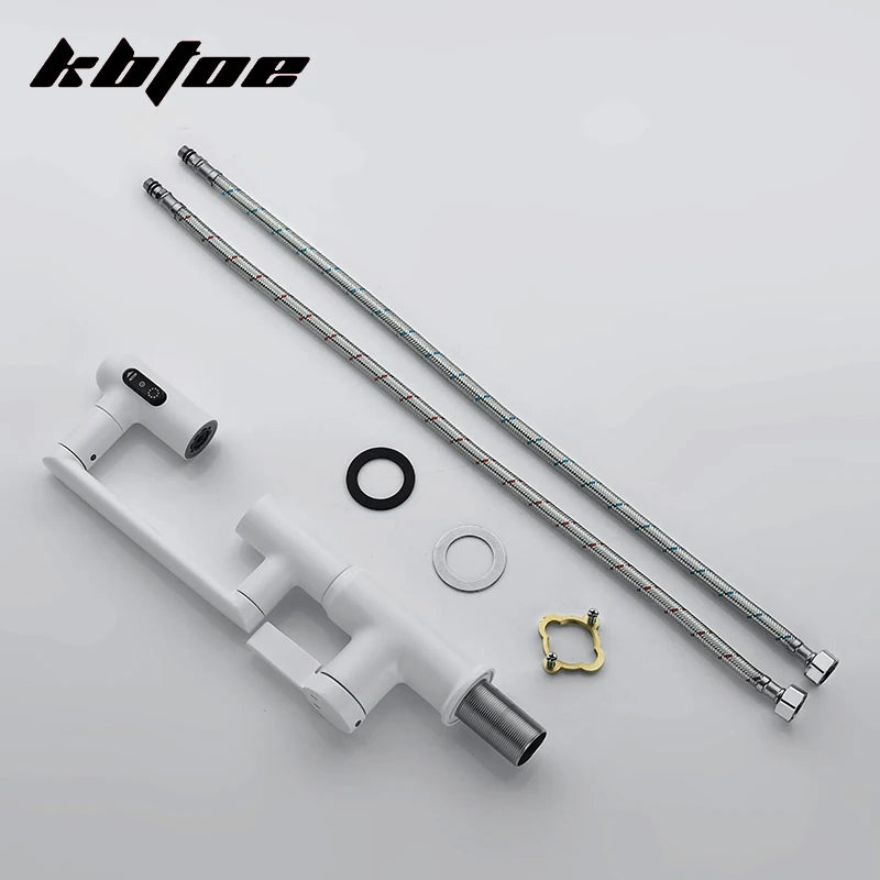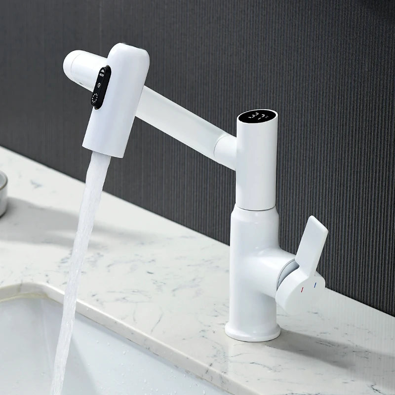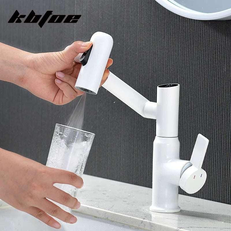 White Bathroom Basin Faucet Digital Display LED 360 Rotation Multi-function Stream Sprayer Hot Cold Water Sink Mixer Wash Tap