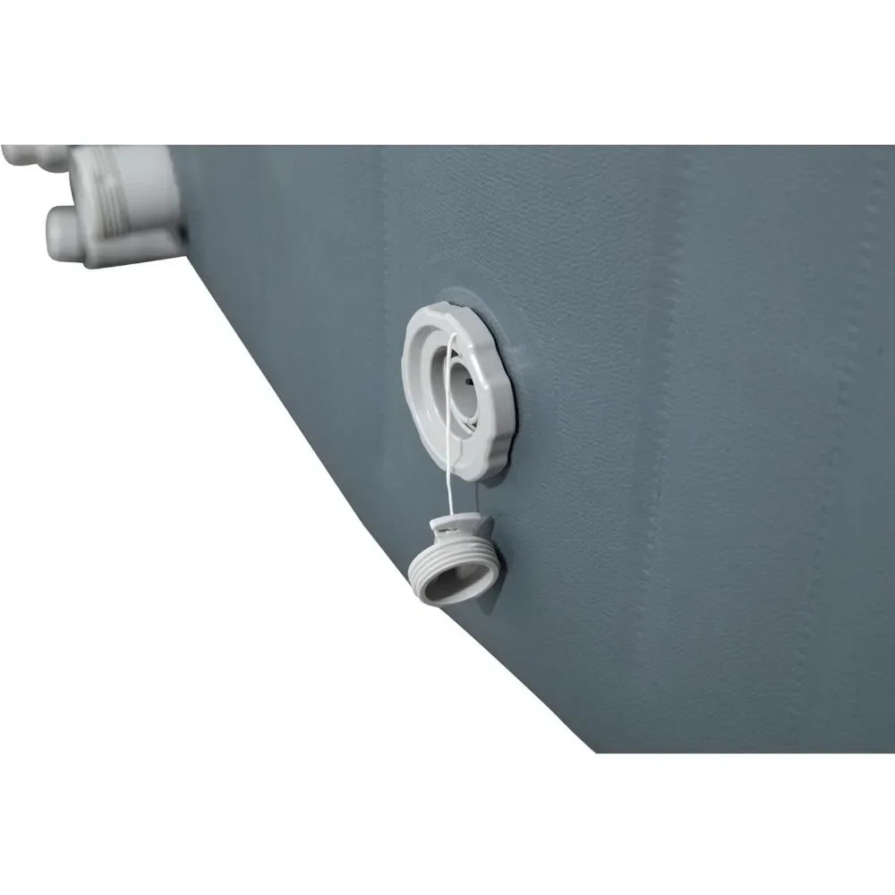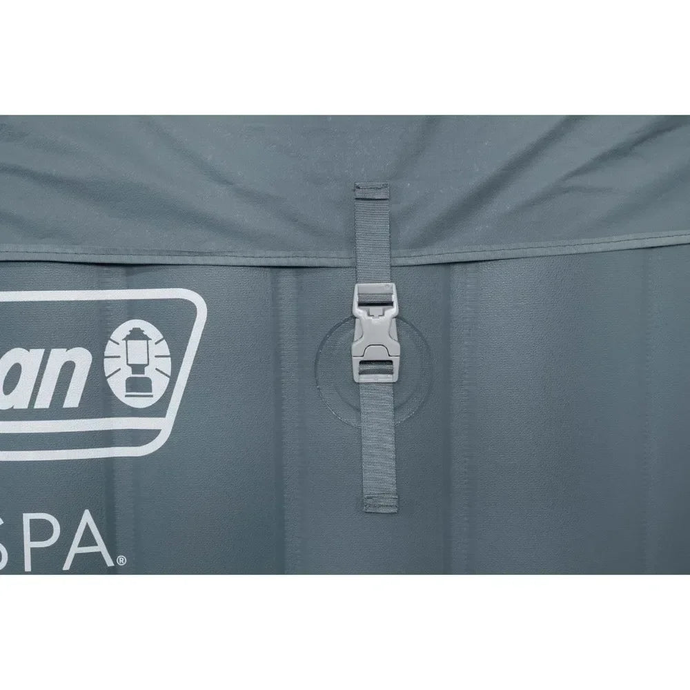 - Equipped with a pump that quickly inflates the spa, heats it up, runs filtration, and controls the massage system for an easy and convenient spa that includes a cover, pump, chemical floater, 2 filter cartridges (VI), repair patch, and 6-foot-long cord.