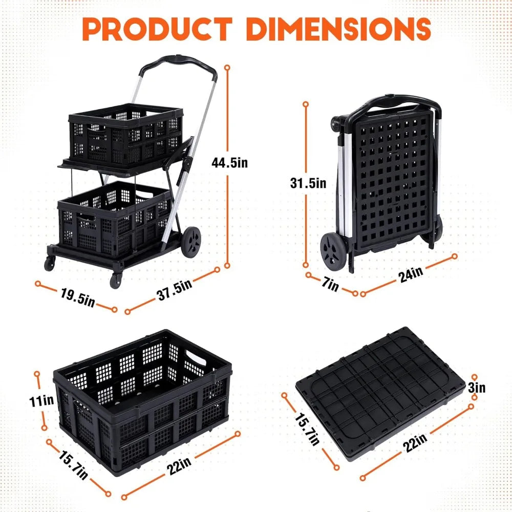 Take on any shopping challenge with our Folding Grocery Cart on Wheels! It features a compact and portable design that can easily navigate through crowded aisles and tight spaces. With its 2-tiered structure, you can efficiently organize your groceries and other items for a hassle-free shopping experience. Don't let heavy loads stop you - take the bold step with our portable cart now!